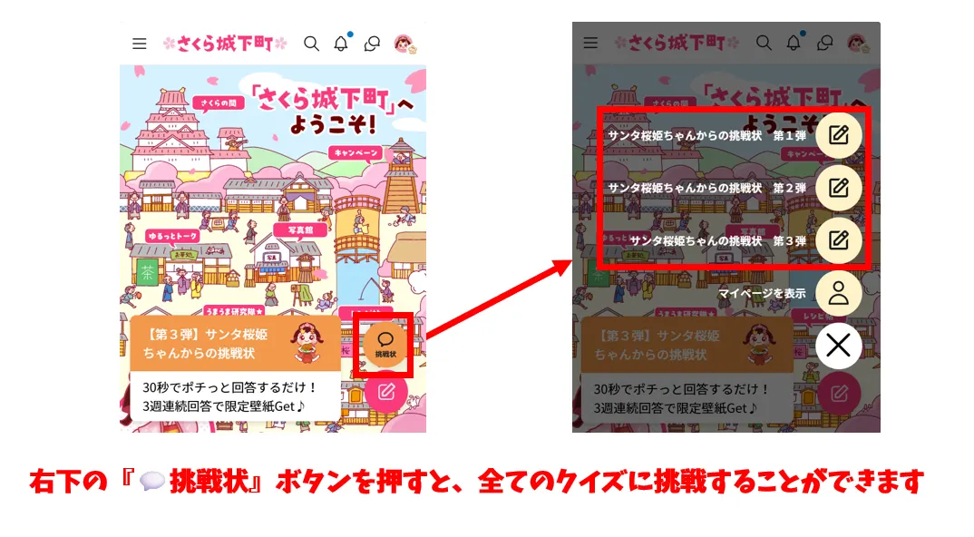 さくら城下町にも「サンタ桜姫ちゃんからの挑戦状」が届きました!
