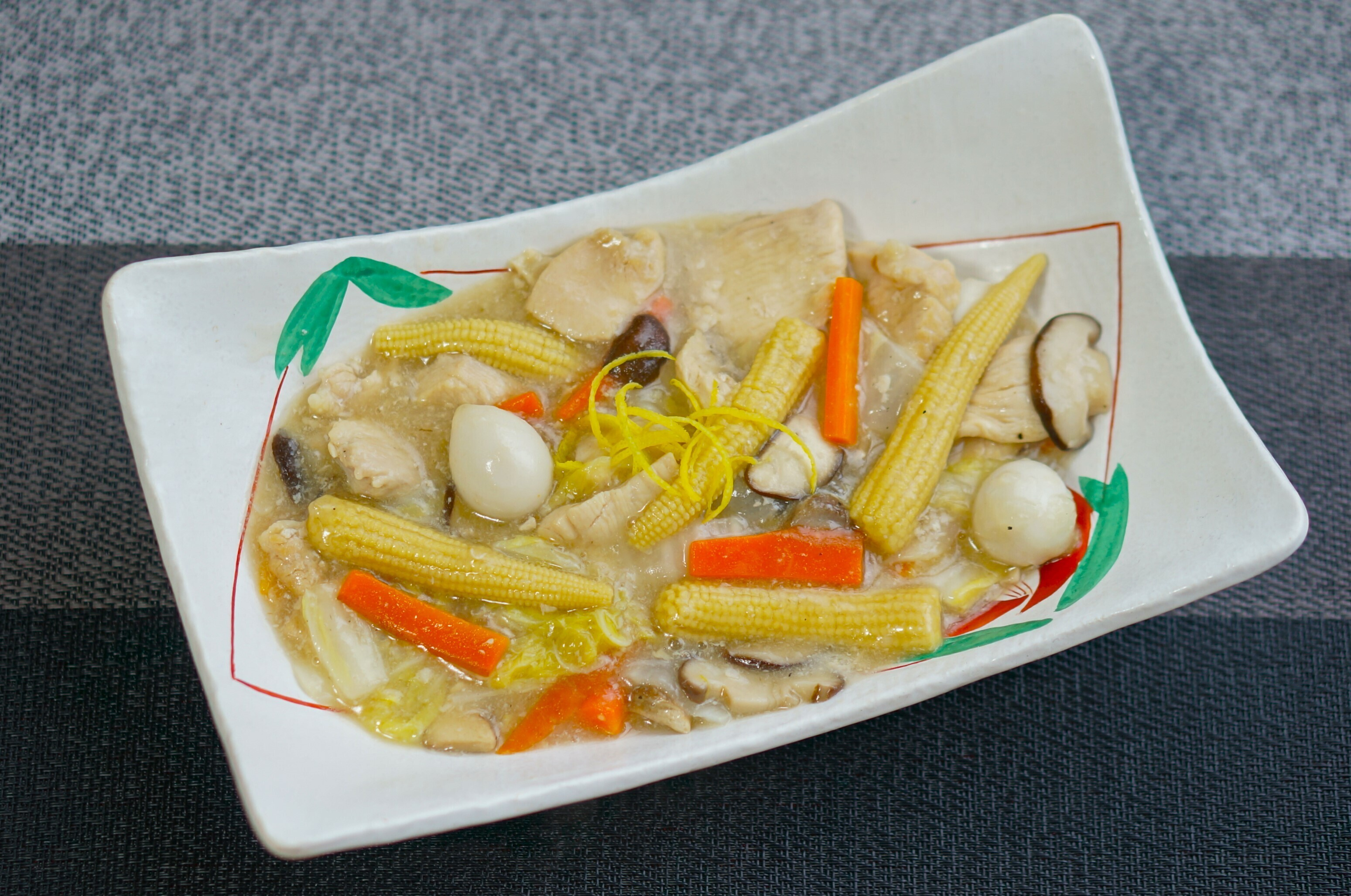 八宝菜みたいだなと感じたので、合わないことはないと考えてヤングコーンとウズラの卵も入れました。