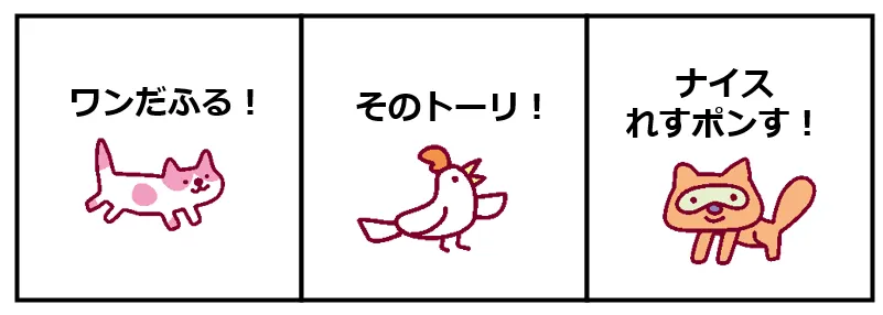 これまでは桜姫ちゃんデザインのリアクションが実装されておりましたが、今回はさくら城下町に住んでいる動物たちが登場していますので、ぜひ使ってみてください🐶🐔🦝