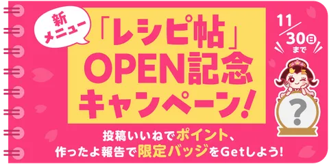 【終了】🌸新メニュー 『レシピ帖』OPEN記念!『作ったよ!キャンペーン』開催🌸