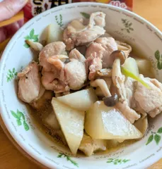 夜勤明け朝ご飯 今朝は、鶏大根でしたすき焼き煮の素を使って美味しく出来ました