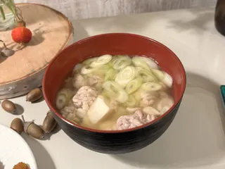 ちょっーと沈んで見えてないですが、白子と鶏ごぼうのすり身を入れたお味噌汁です。 「とりごぼうのすりみ」、、調べたらお魚、お肉、お野菜が一度にとれる健康食品。販売当時は、お肉が入っているのに鮮魚コーナーで販売される全国初の製品だったんですね。魚肉のすり身以外に鶏肉と鶏ひき肉が入ってます。
